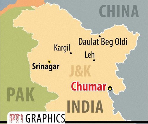 Khu vực Chumar ở biên giới Trung – Ấn. Đồ họa: PTI