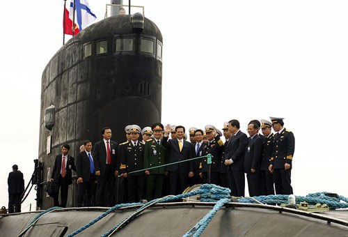 Thủ tướng Nguyễn Tấn Dũng đến thăm và thị sát tàu ngầm Kilo 636 mang tên Hà Nội của Hải quân Việt Nam trong chuyến thăm Nga hồi tháng 5.2013