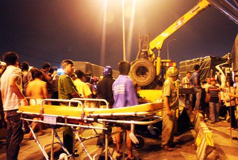 Cảnh sát giao thông quận Bình Tân có mặt tại hiện trường đồng thời huy động xe cẩu đến xử lý. Đến rạng sáng 11/9, hiện trường vẫn chưa được giải quyết xong.