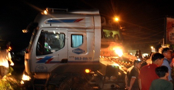 Xe đầu kéo khi qua đường ngang dân sinh bất ngờ khựng lại đúng lúc đoàn tàu SE5 đang lao tới. Cú tông trực diện khiến xe container văng xa, đầu tàu hoả hư hỏng nặng.