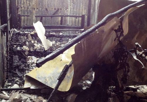 Giường ngủ, chiếc nệm lò xo và đầu xe tay ga cháy rụi.